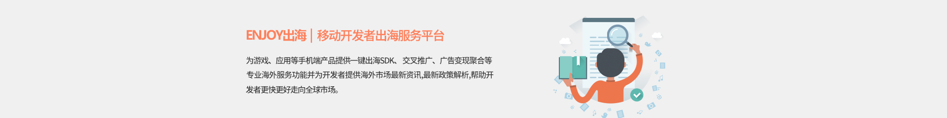 Enjoy出海--移动开发者出海服务平台,为游戏、应用等手机端产品出海提供信息服务、工具服务、营销服务,一站式解决开发者出海需求,帮助开发者更快更好走向全球市场。
